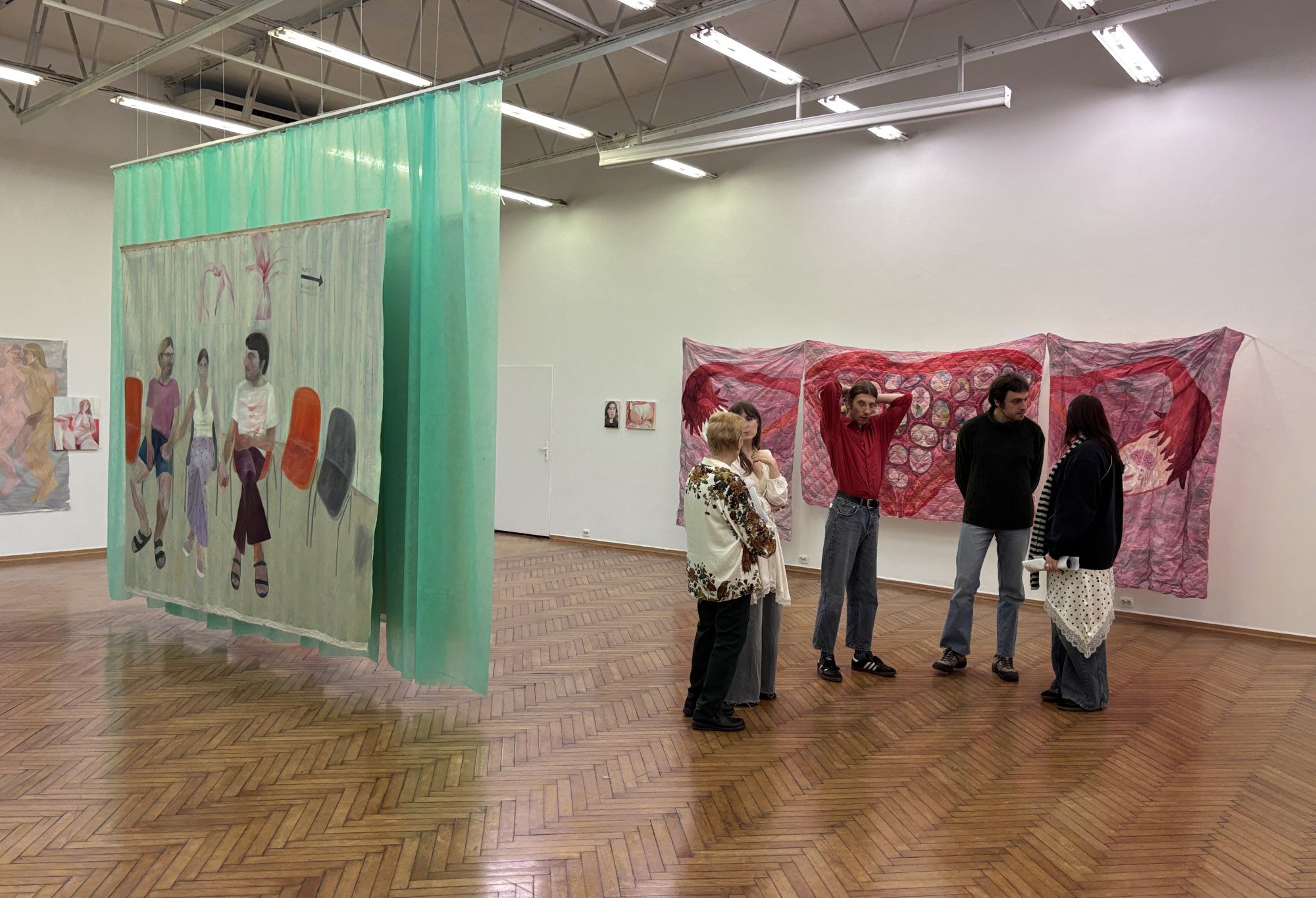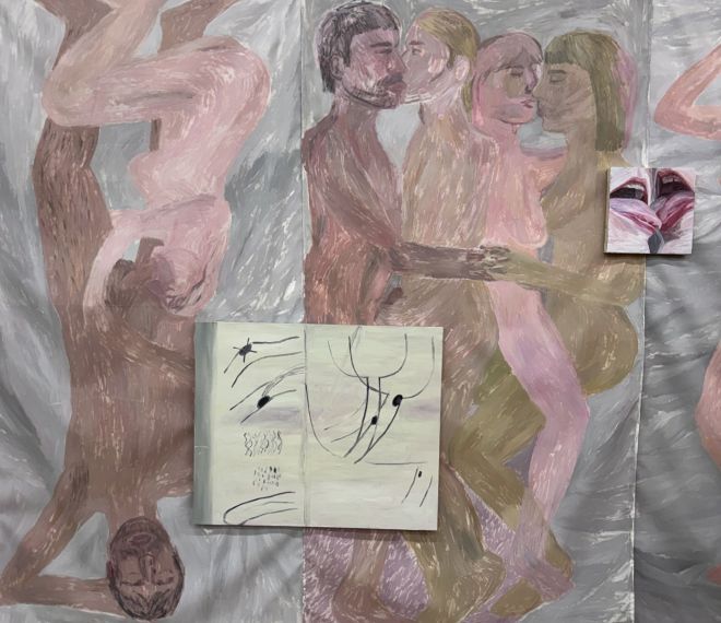 Tematy medyczne, przez wielu uznawane za wstydliwe i obarczone tabu, nie są w jej malarstwie nowe. Półtora roku temu podobnym zagadnieniom poświęciła wystawę „Cytologia”, którą zorganizowała w swoim mieszkaniu w Warszawie w ramach festiwalu Fringe. Kilka prac z tamtej wystawy przywiozła do Zielonej Góry, między innymi obraz, na którym razem z dwoma chłopakami czeka w korytarzu na test na HIV. Martyna zaproponowała im zrobienie testu jako wspólną aktywność. Cała trójka trzyma się za ręce. Miłość i pożądanie unoszą się w przychodni. To scena normalna, czuła, chciałoby się wręcz powiedzieć – beztroska.