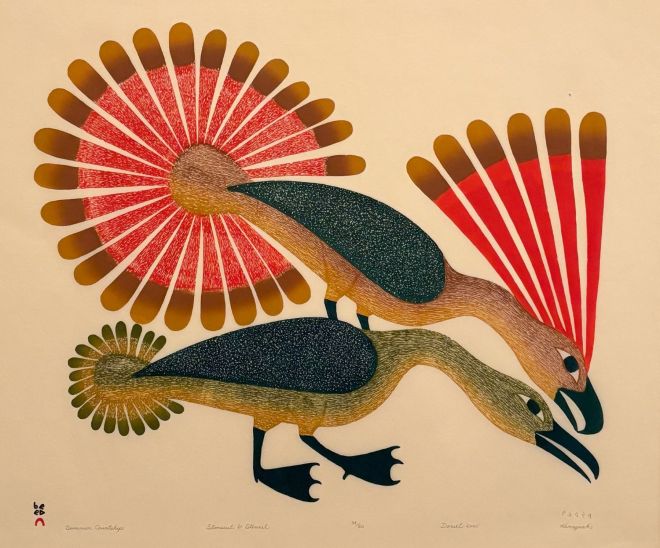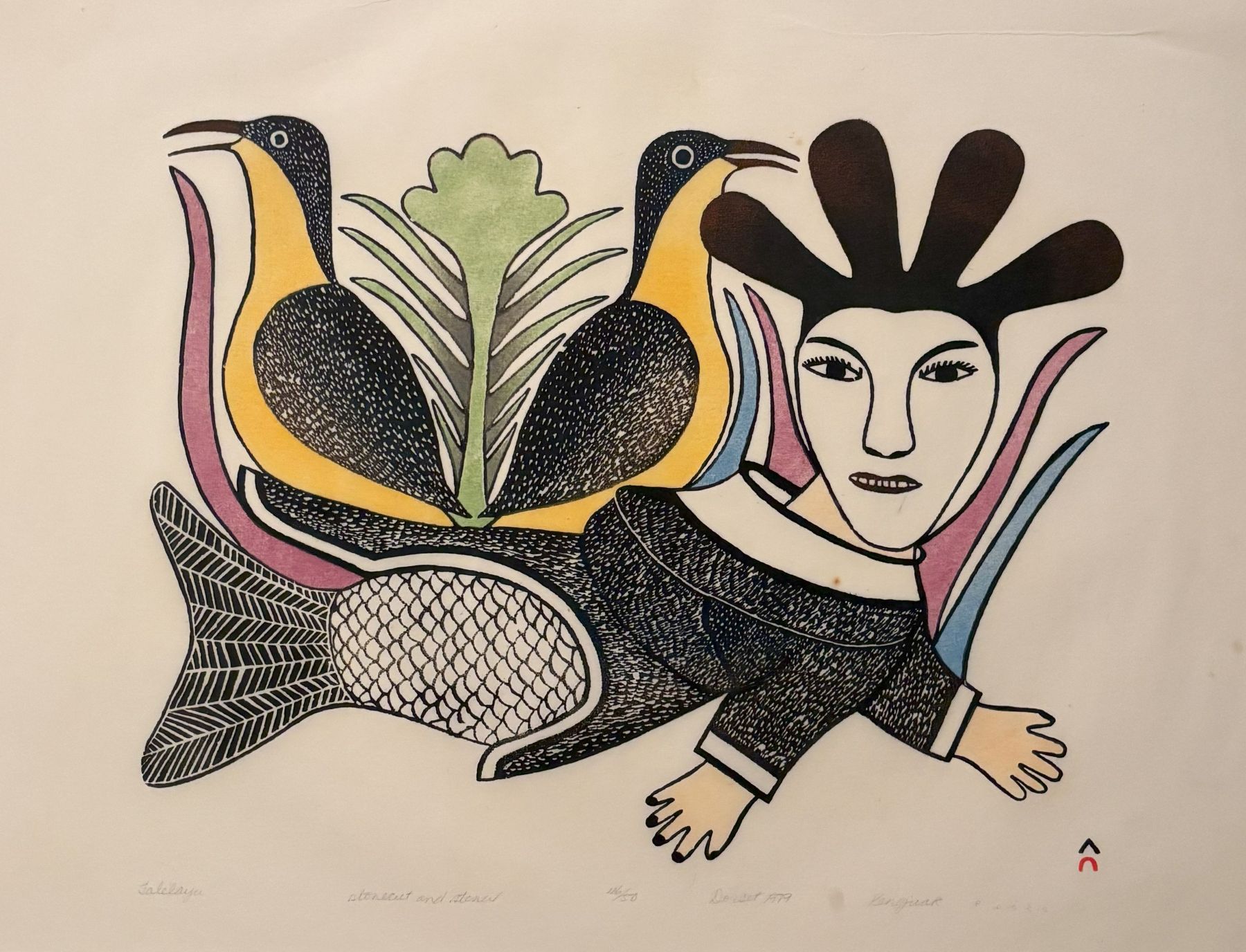 Kenojuak Ashevak, The Woman Who Lives in the Sun, 1969, kamienioryt, AGO, TorontoKenojuak Ashevak, Talelayu, 1979, kamienioryt i szablon na papierze, AGO, TorontoKenojuak Ashevak, Summer of Courtship, 2000, kamienioryt i szablon na papierze, AGO, Toronto