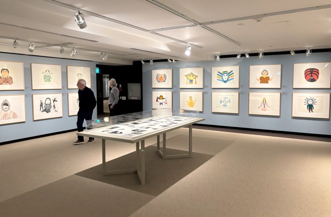 Wystawa „Worlds on Paper. Drawings from Kinngait”, którą można oglądać w McMichael Canadian Art Collection w Kleinburgu na przedmieściach Toronto, jest jednak wyjątkowa. Dotyczy bowiem kilku pierwszych dekad działalności artystycznej w Kinngait. Na wystawę kuratorowaną przez Emily Laurent Henderson składają się rysunki z lat 1957-1990, autorstwa 48 twórców. Towarzyszy jej też mniejsza ekspozycja współczesnych rysunków z Kinngait.