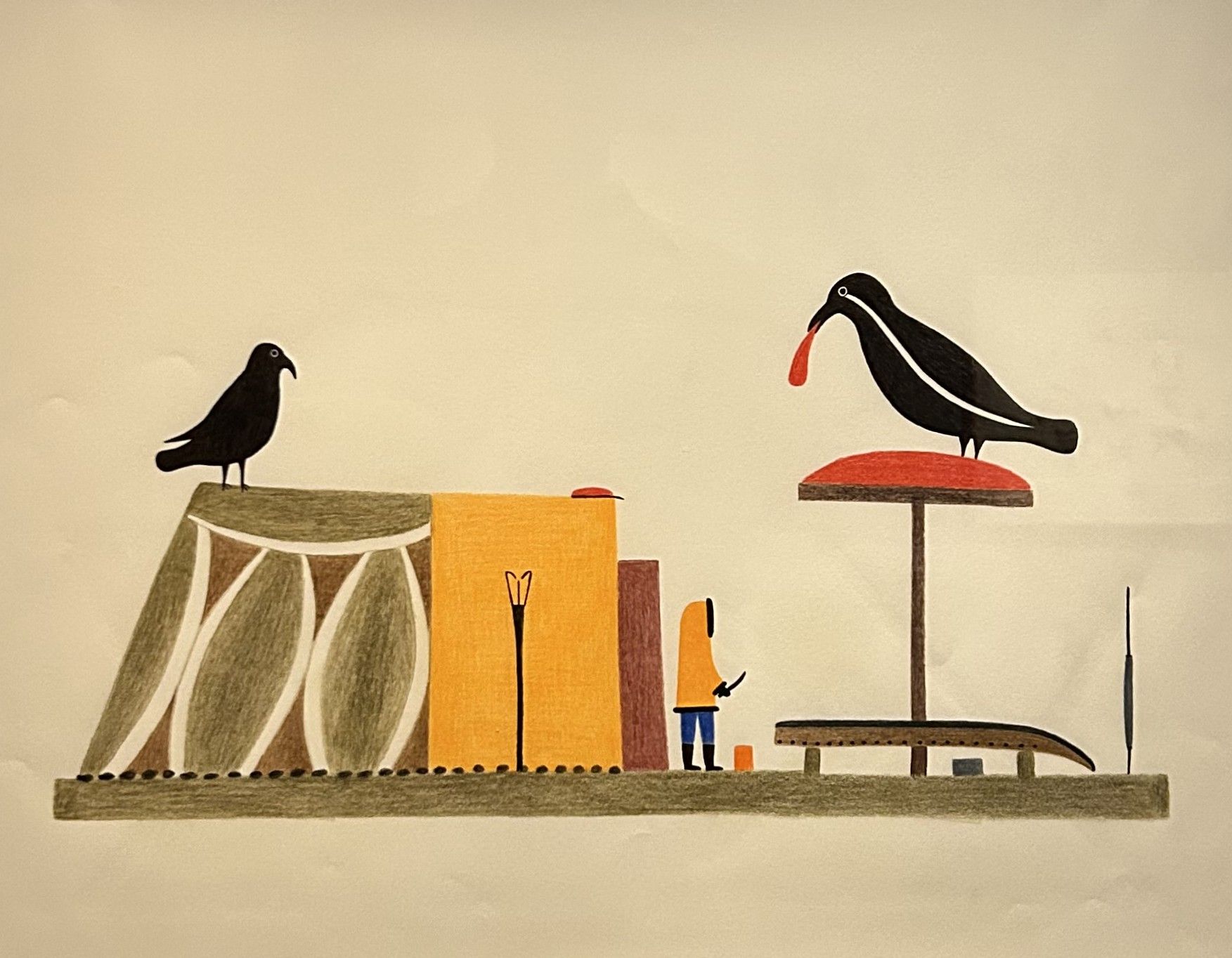 W tej historii jest wiele paradoksów. Zaczynając od samego papieru, wszak w Arktyce nie ma drzew – większość z prac powstaje na specjalnym papierze importowanym z Japonii. Otwarcie warsztatów graficznych i tworzenie sztuki na sprzedaż wpisywało się w kolonialny kanadyjski projekt zmiany gospodarki i sposobu życia Inuitów. Te procesy lepiej odcisnęły się jednak na mniej popularnych wówczas rysunków. Okres niewyobrażalnej dziś przemocy wobec Inuitów zbiegł się z rosnącym apetytem na sztukę inuicką na Południu.