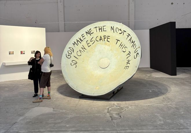 Chociaż w Timişoarze poznałem wiele prac i wielu artystów, nie mogłem oprzeć się wrażeniu powtórzenia. Na fasadzie byłego garnizonu, w którym odbywa się główna część biennale, zainstalowano kilka gwiazdek świecących wieczorem. To praca Petrita Halilaja „When the Sun Goes Away, We Paint the Sky” (Kiedy słońce odchodzi, malujemy niebo). Widziałem ją w innym układzie na Manifesta 14 w Prisztinie w 2022 roku. W stolicy Kosowa, skąd pochodzi Halilaj, jego instalacja miała jednak szczególne znaczenie – umieszczona na dachu Grand Hotelu recyklingowała i rekonfigurowała pierwotne dekoracje budynku, odnosiła się do lokalnej tożsamości, niepodległości Kosowa.
