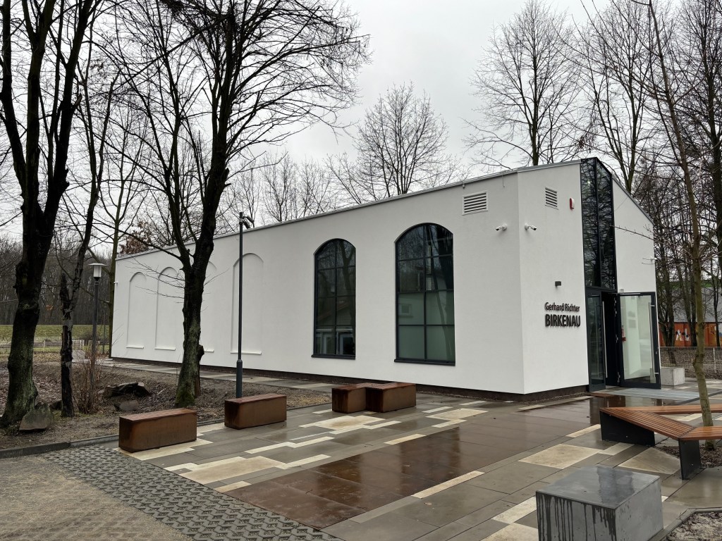 Budynek, który Richter zaprojektował wraz z żoną Sabine Moritz-Richter, przypomina kaplicę. Jest prosty, biały, kryty dwuspadzistym dachem. Na swojej dłuższej osi przecina go szklany pas, którym do środka wpada naturalne światło. Za niewielkim przedsionkiem znajduje się właściwa sala wystawowa. Tam na przeciwległych ścianach zawisły fotograficzne duplikaty czterech abstrakcyjnych obrazów z cyklu „Birkenau” oraz „Szare lustro”, czyli cztery szare szklane panele, w którym odbija się całe wnętrze.