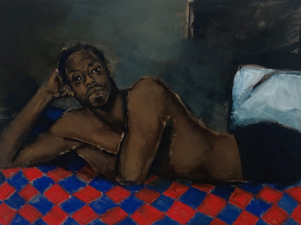 O tym, że obraz jest niedokończony, świadczą chociażby fragmenty taśmy maskującej, wciąż przyklejone do powierzchni płótna. Obraz „My Partents and Me” niesie opowieść o nie zawsze łatwej relacji między portretującym i portretowanym. A już z racji tego, że wystawa odbywa się w National Portrait Gallery, portret jest właśnie w jej centrum.