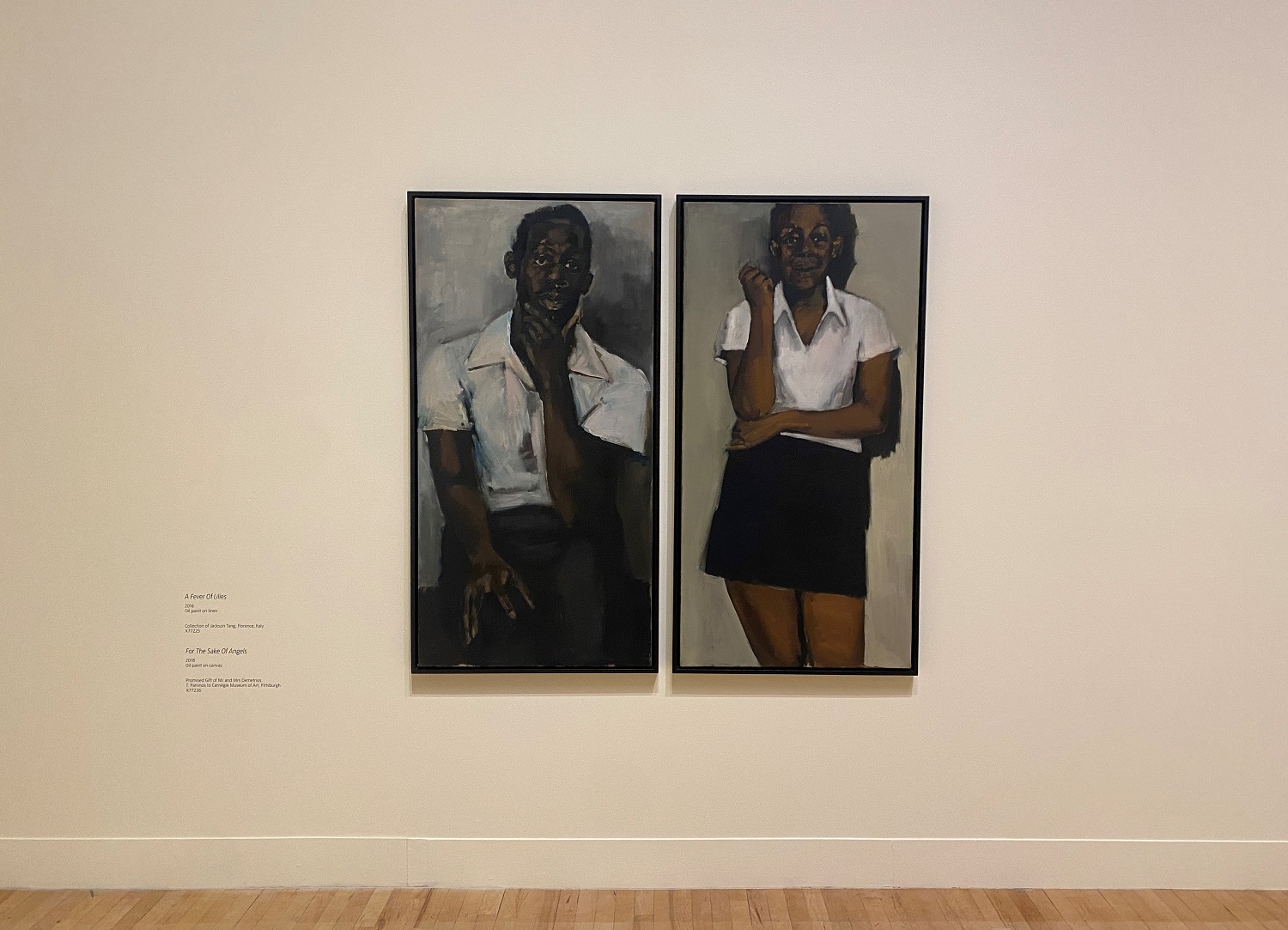 O tym, że obraz jest niedokończony, świadczą chociażby fragmenty taśmy maskującej, wciąż przyklejone do powierzchni płótna. Obraz „My Partents and Me” niesie opowieść o nie zawsze łatwej relacji między portretującym i portretowanym. A już z racji tego, że wystawa odbywa się w National Portrait Gallery, portret jest właśnie w jej centrum.